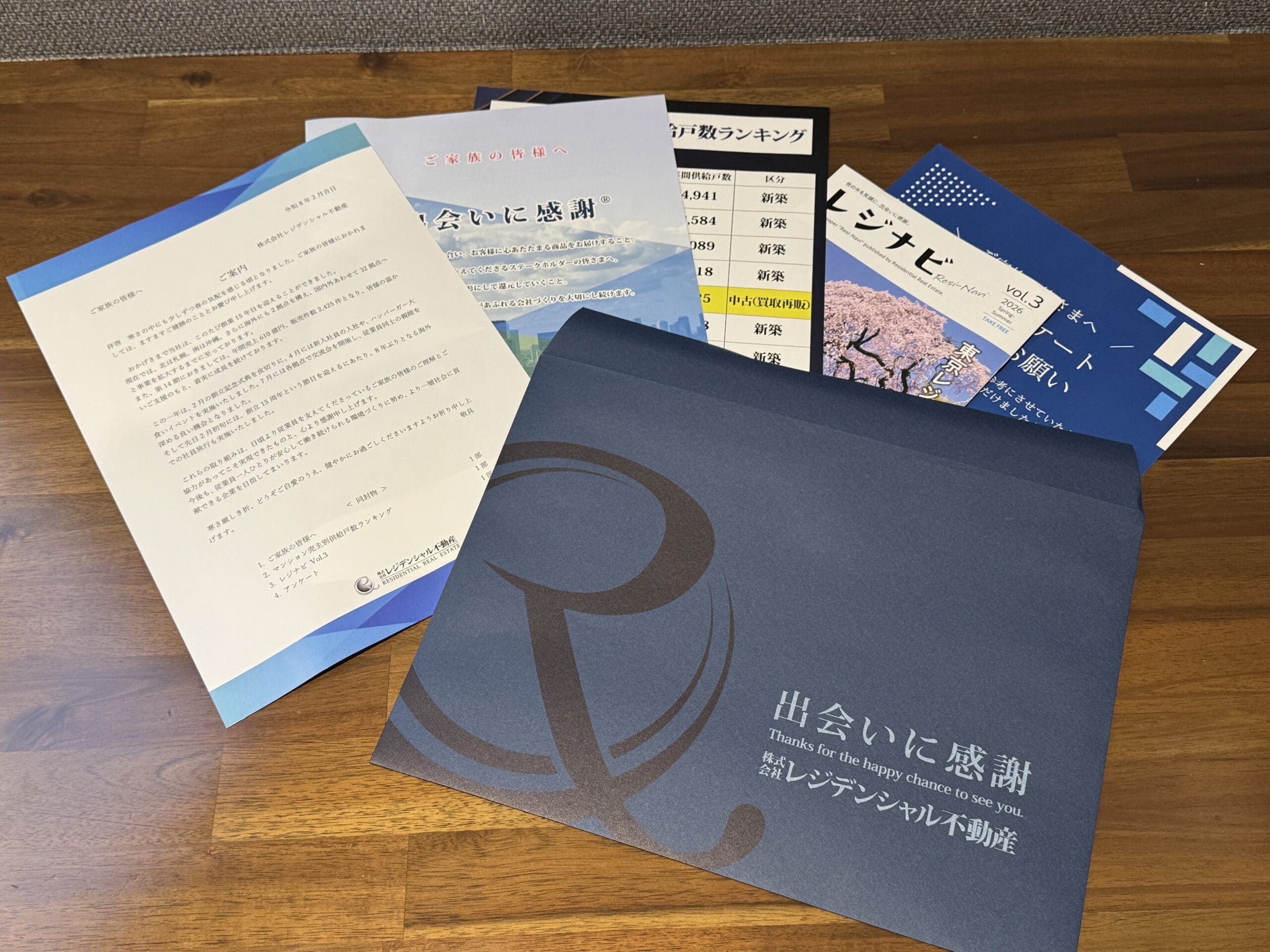 今回お送りしたパンフレットには、レジデンシャル不動産の事業内容や業績のご報告に加え、部活動やCSR活動、グループ会社の取り組みなども掲載しており、先日発行した広報冊子「レジナビ」も同封しております。